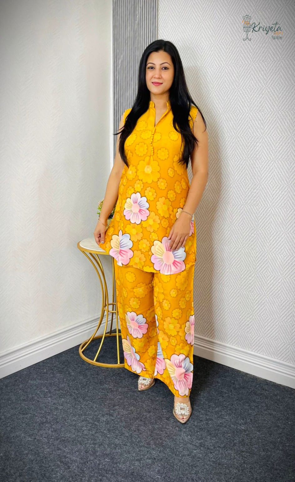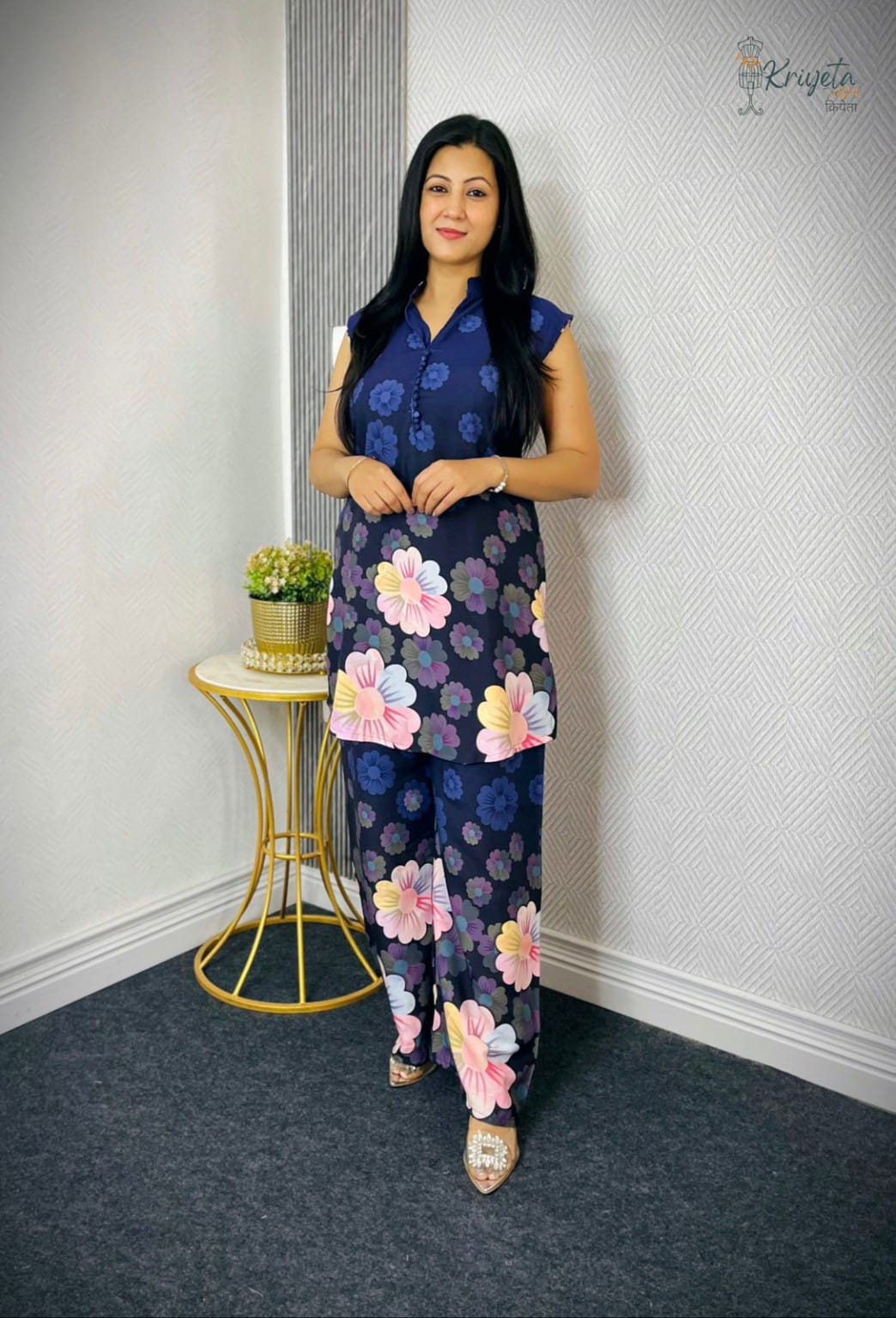 Upgrade your everyday wardrobe with this elegant floral printed kurti pant co-ord set, designed for comfort and effortless style. The sleeveless kurti features a smart mandarin collar and button detailing, while the matching straight-fit pants complete the coordinated look.